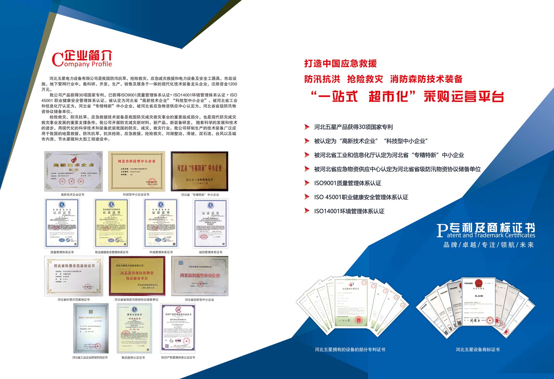 河北五星電力設(shè)備有限公司是我國(guó)防汛抗旱、搶險(xiǎn)救災(zāi)、應(yīng)急減災(zāi)救援和電力設(shè)備及安全工器具、市政設(shè)施、地下管網(wǎng)行業(yè)中,集科研、開(kāi)發(fā)、生產(chǎn)、銷售及服務(wù)于一體的現(xiàn)代化技術(shù)裝備高新技術(shù)企業(yè),注冊(cè)資金1200萬(wàn)元。  我公司產(chǎn)品已獲得ISO9001質(zhì)量管理體系...